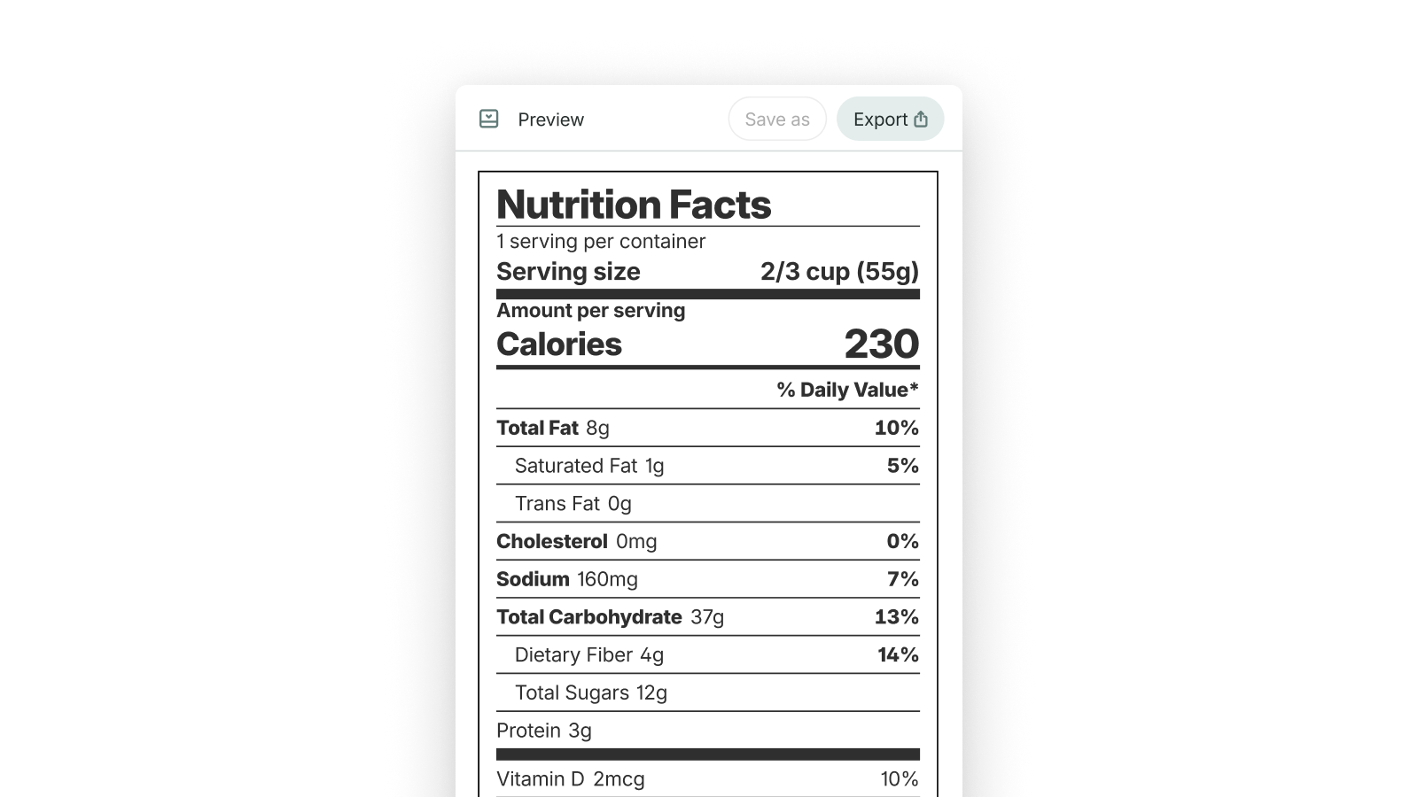 Print a Nutrition Facts Label