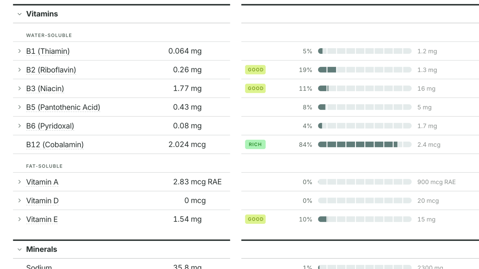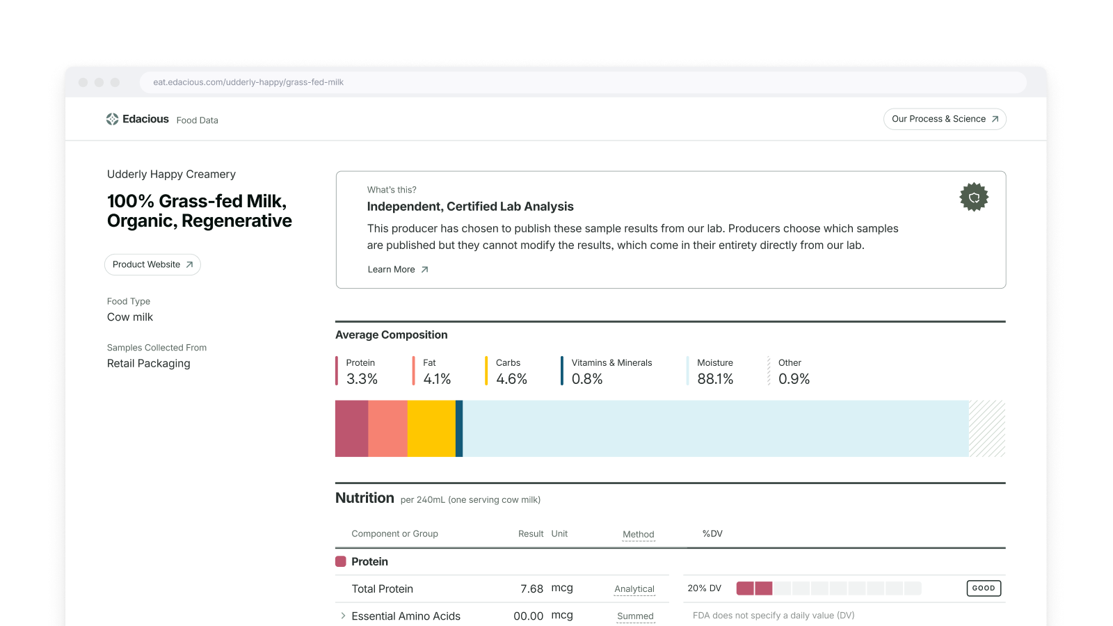 Compare your food to category data that we have for your food type, including USDA FoodData, and up-to-date Edacious data.